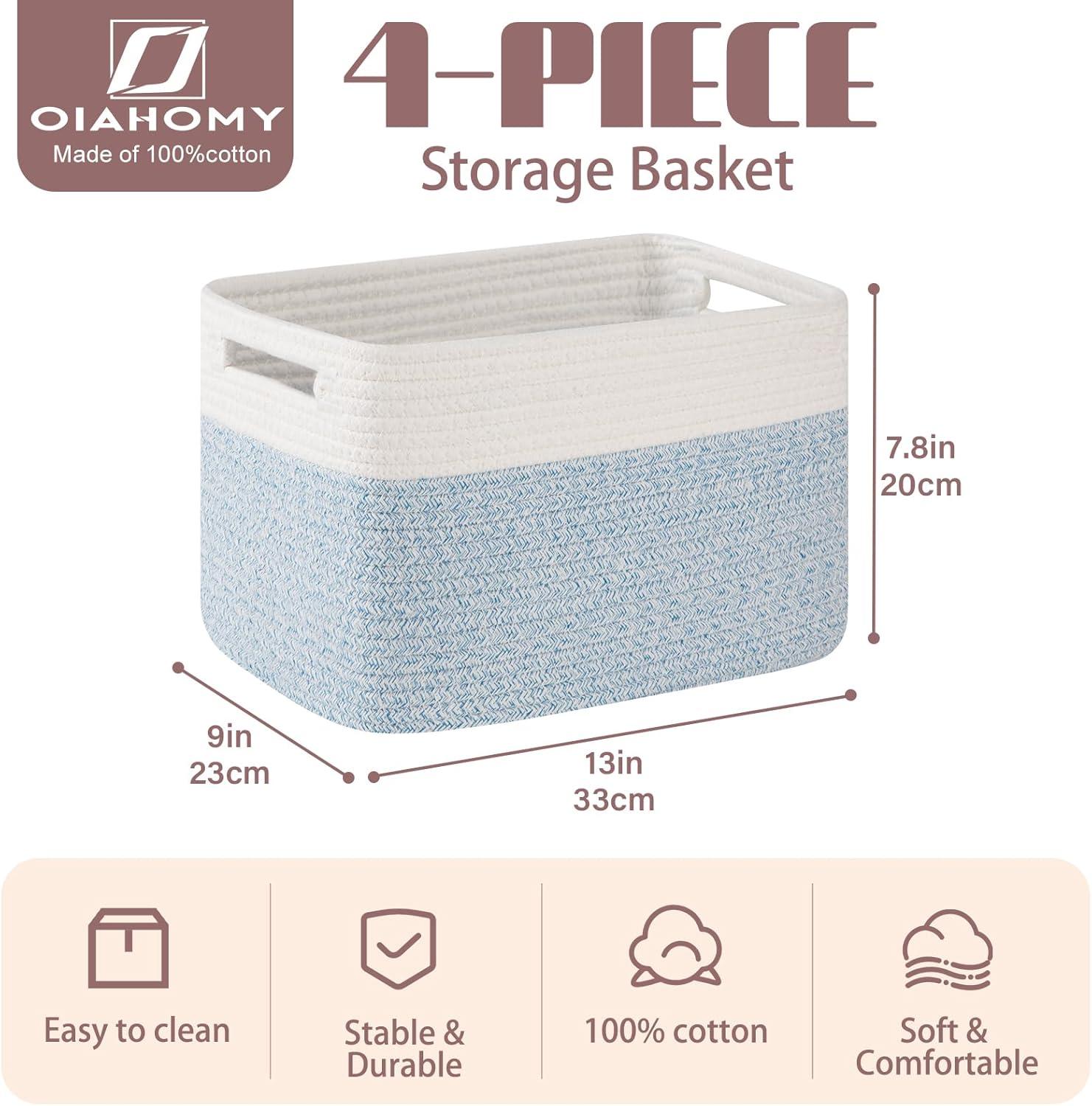 Multi-Purpose Use: This storage baskets for shelves comes in a set of 4, which can be sorted and used according to different needs, the baskets measure 13‘’Lx9‘’Wx7.8‘’H, great for wardrobes, cabinets, shelves and other places to store books, toys, towels, magazines, shoes and more