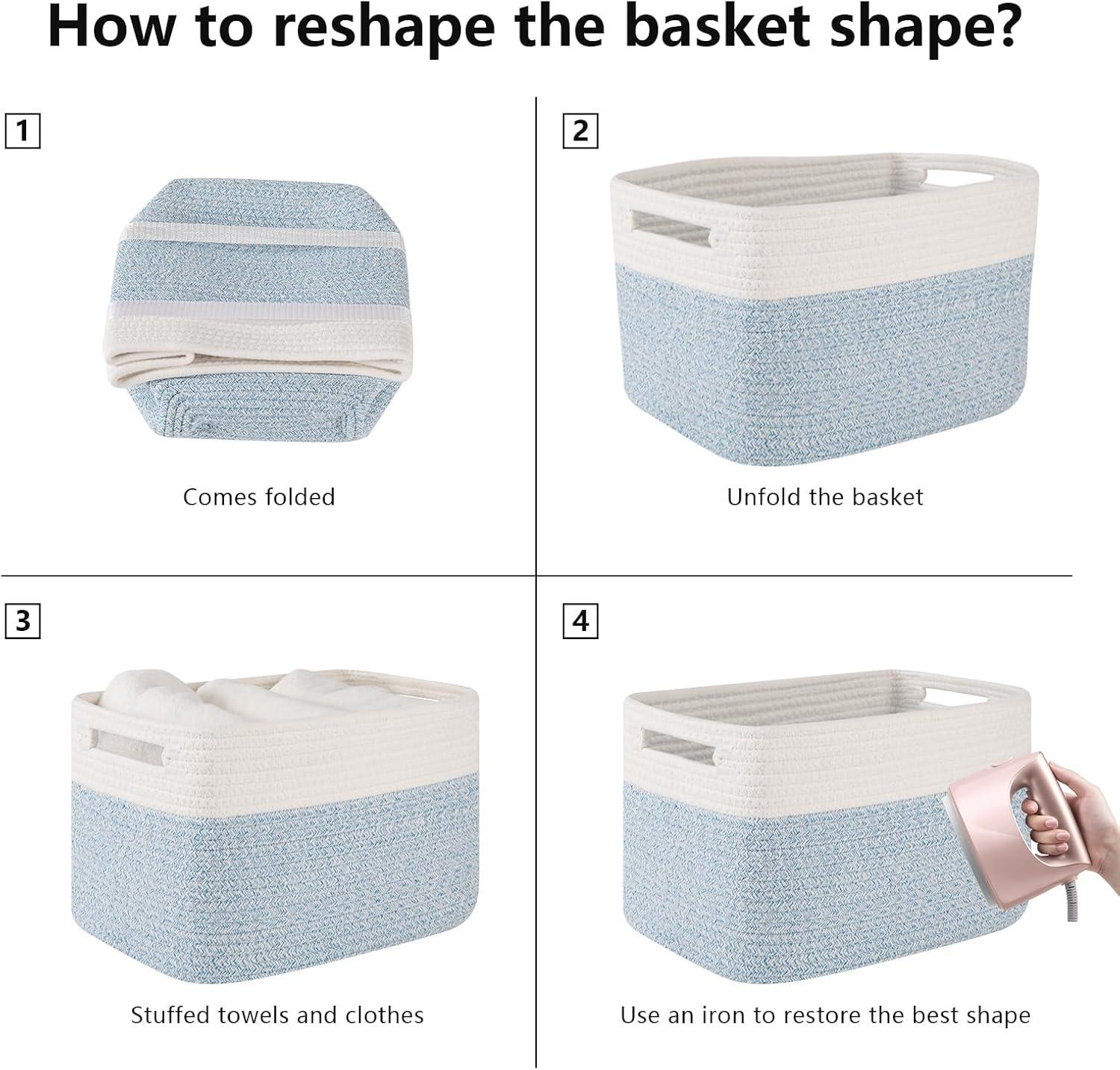 Space-Saving: This cotton rope basket can be folded, easy to store when not in use, reduce space, the shelf baskets is shipped folded and packaged, using clothes, towels or iron can be easily reshape to its original state, it is the best choice for easy organization of the house