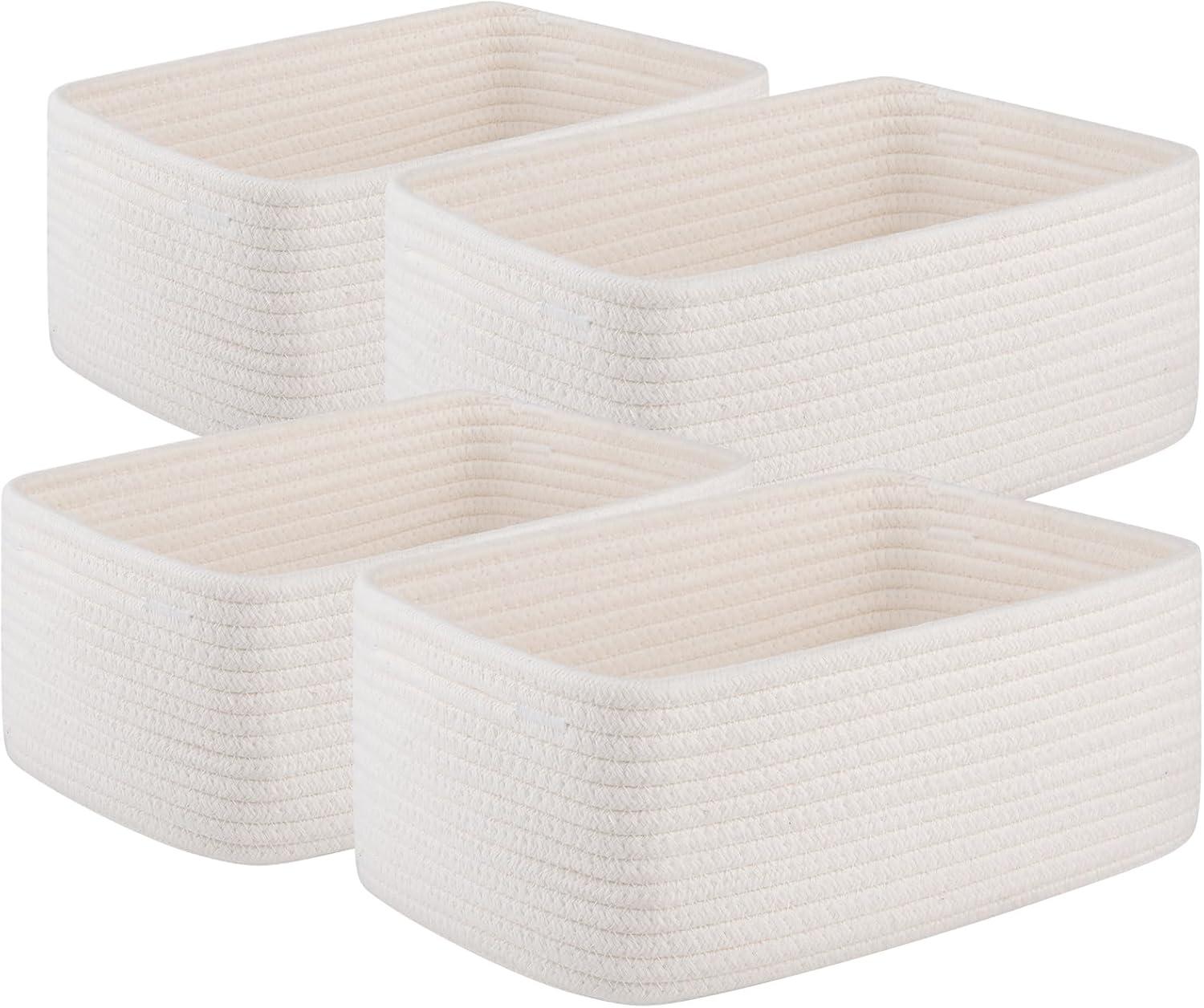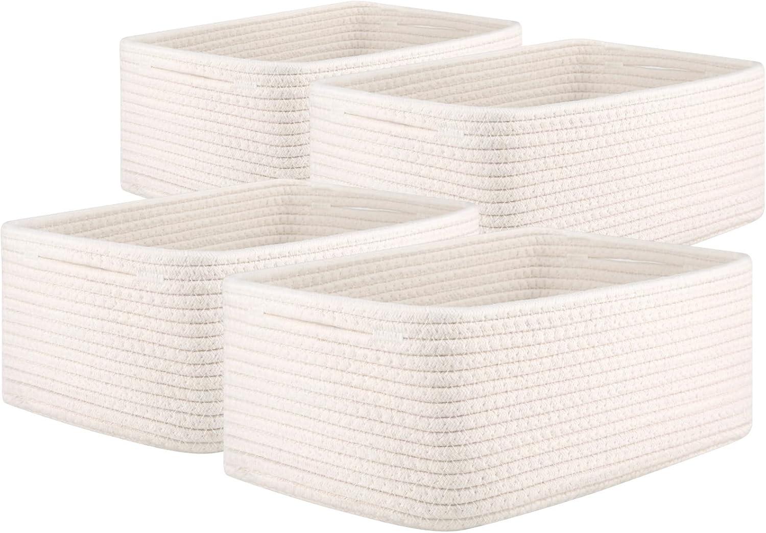 OIAHOMY 4 Pack Storage Baskets for Organizing, Small Bins for Shelves, Cute Decorative Storage Bins, Organizer Baskets for Gifts Empty, 11.8''Lx7.8''Wx4.7''H, Brown/White(White)