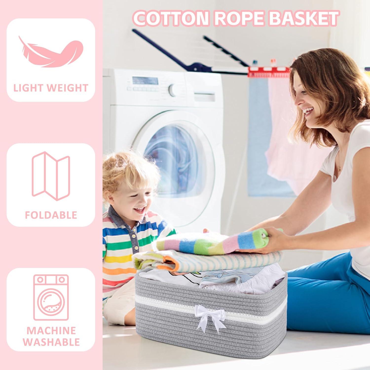 Safe Material: The basket is 13.5*6*10in and made of high quality cotton material, no chemical material, no odor, soft and skin friendly. It is no sharp edges that may scratch the floor, especially suitable for children and pets. We are passionate about providing you and your family with a healthy and clean home atmosphere