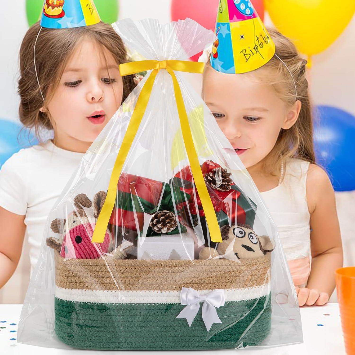 OIAHOMY Christmas Basket with Gift Bags and Ribbons, Woven Storage Basket for Decorations, Nursery, Pets – Green(Yellow)