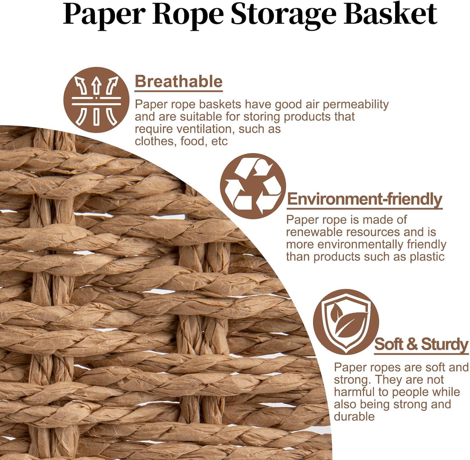 The square shaped design and three different sizes of sets make these wicker storage baskets suitable for different scenarios such as living rooms, bedrooms, bathrooms, offices, kitchens, etc. These baskets for organizing are the perfect assistants for home storage