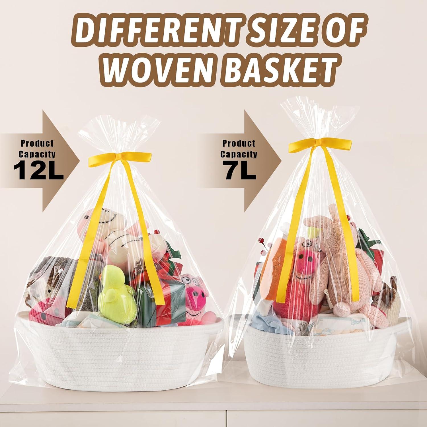 Safe Material : Our gift baskets empty for storage are made from natural cotton, so they’re completely safe for little mouths and hands. It is made of high quality natural cotton rope, soft and skin-friendly, chemical free, and won't scratch clothes or furniture. It's a perfect storage basket for families with babies or pets