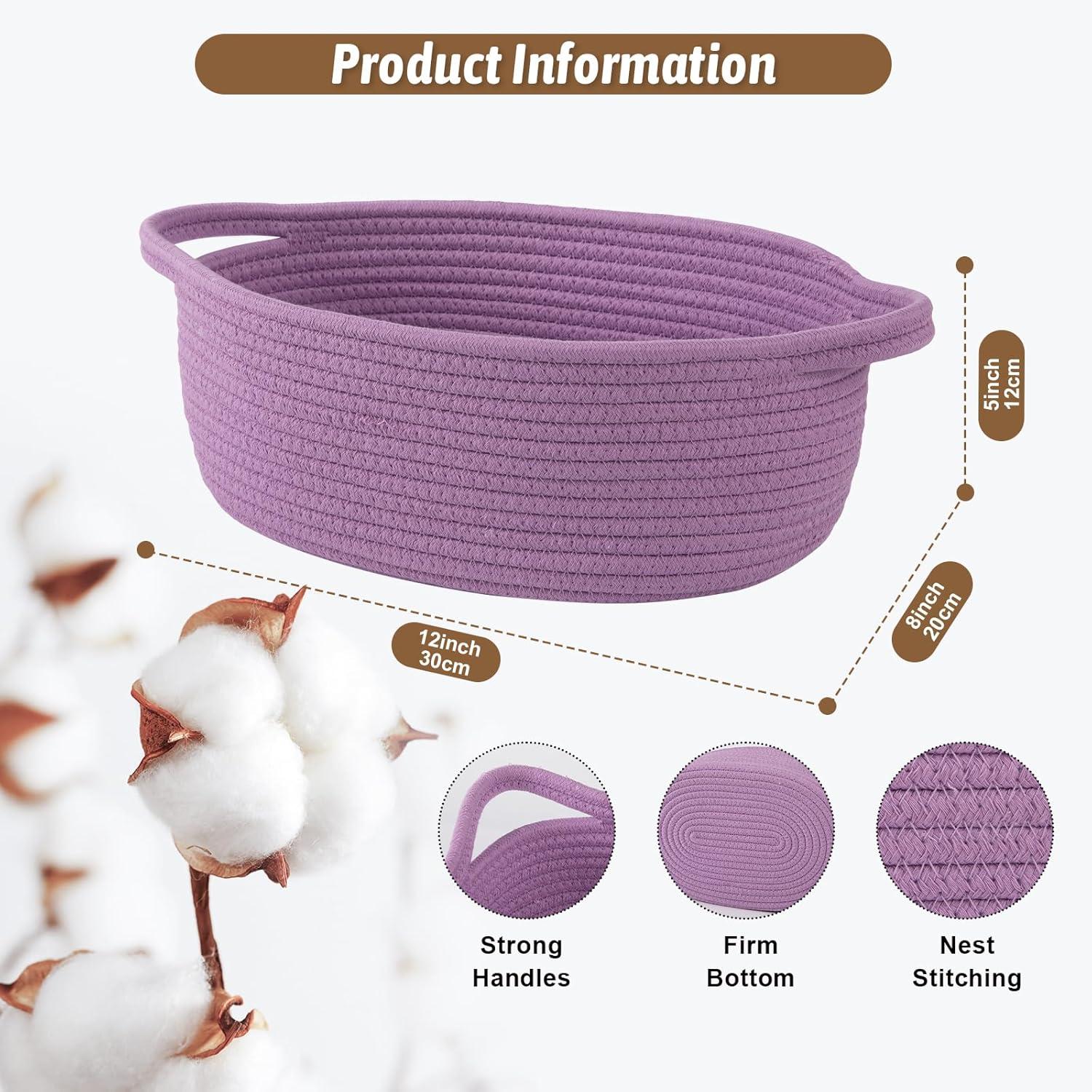 OIAHOMY Small Woven Basket with Gift Bags, Ribbons & DIY Label Card, Baskets for Gifts Empty, Small Rope Basket 12 * 8 * 5IN, Cute Decorative baskets with Handles for Baby Pets, Toys, Green(Lilac Purple)